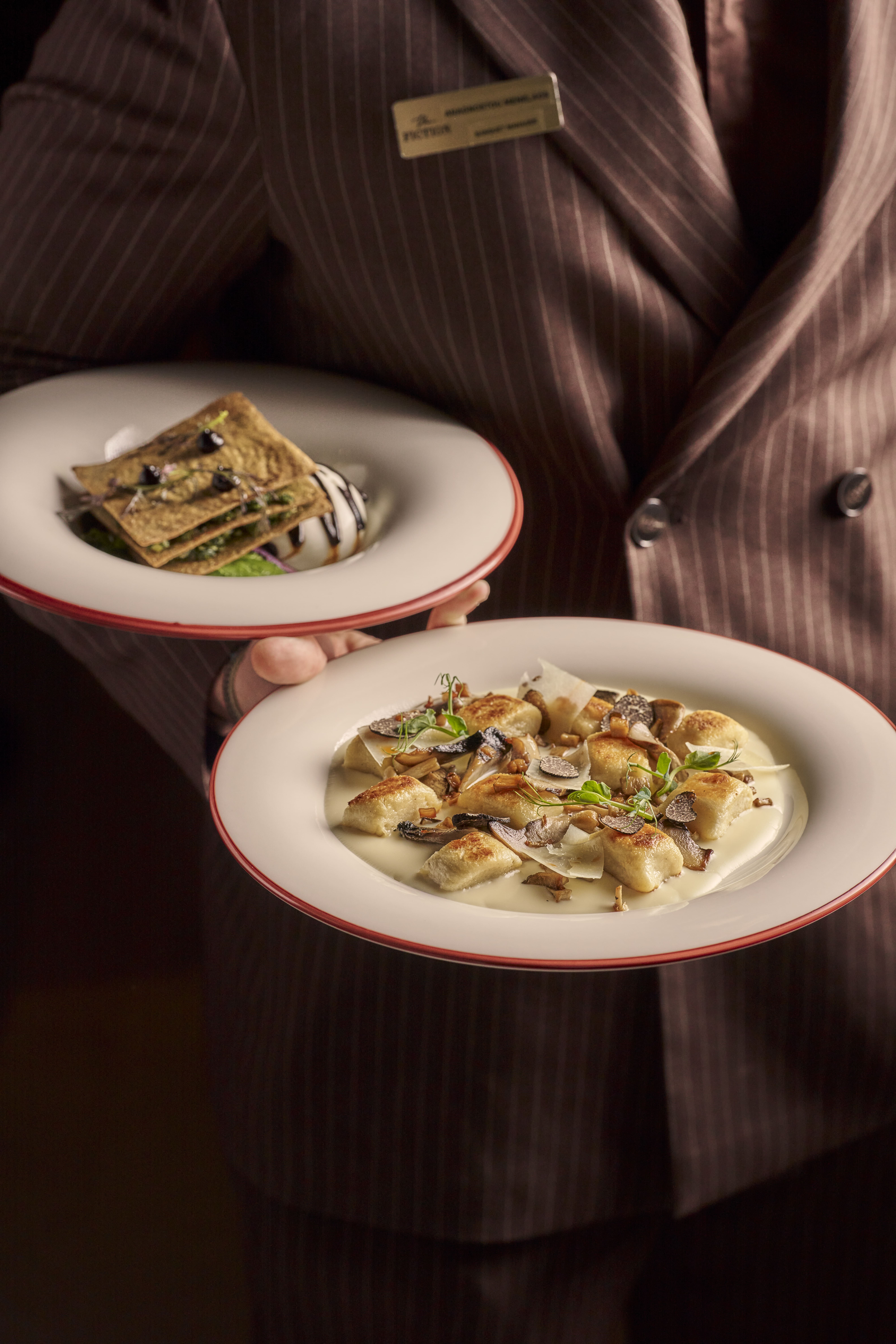What do you think? I really love the bar, how about a cocktail before dinner? Yes, right there is perfect, dear, and then we are getting to our table. I know the food is fantastic here, but I’ve never had the time to have a cocktail before starters. You know, the first time I’ve had dinner here was with a friend who was staying at The Fiction, and I loved it! I’ve been coming quite often ever since, I’m so glad the restaurant is also open to non-guests. Really, it is a rare finding! I don’t know, it’s all those things together, the food is excellent, the space is at once so… urban and artistic, what do you think? Oh, am I talking too much?